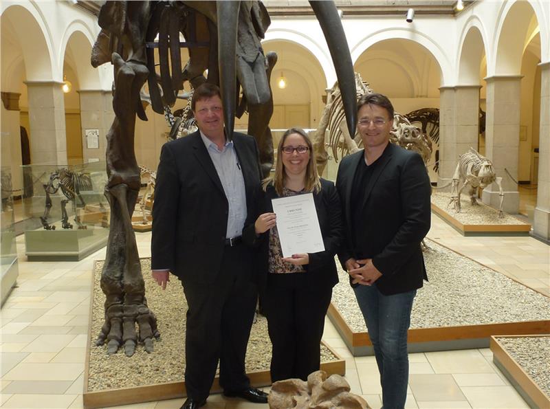 Am vergangenen Donnerstag hielt Evelyn Kustatscher, Kuratorin für Paläontologie im Naturmuseum Südtirol im Betrieb Landesmuseen, an der Fakultät für Geowissenschaften der Ludwig-Maximilians-Universität München vor der Fakultät ihren öffentlichen, wissenschaftlichen Vortrag anlässlich ihrer Habilitation für das Fachgebiet Paläontologie. Im Anschluss an den Vortrag und die angeregte Fachdiskussion überreichte der Dekan der Fakultät Ralf Ludwig die Urkunde über die Lehrbefähigung an der LMU. Professor Michael Krings gratulierte Kustatscher im Namen der Fachmentoren.