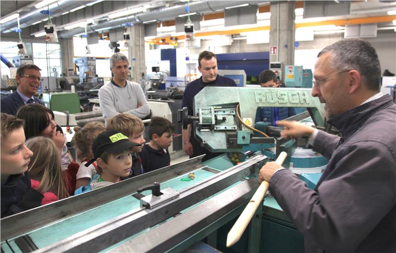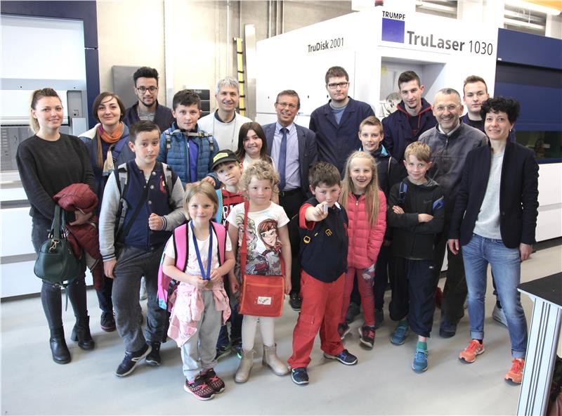 Der Leiter des Bereichs Italienische Berufsbildung des Landes, Renzo Roncat, der Direktor der Berufsschule, Mauro Bruccoleri, der Koordinator Renzo Marcon, die Lehrkräfte für Metallmechanik Alessandro Fantinati und Enrico Munerati sowie die Schüler der 3. Klasse Mechanik haben die Klasse und die Lehrerinnen der Grundschule Flaas begrüßt. Am Treffen nahmen auch der Professor an der Fakultät für Design und Künste der Freien Universität Bozen, Kuno Prey, sowie die Forscherin Mariagiovanna Dilorio teil.