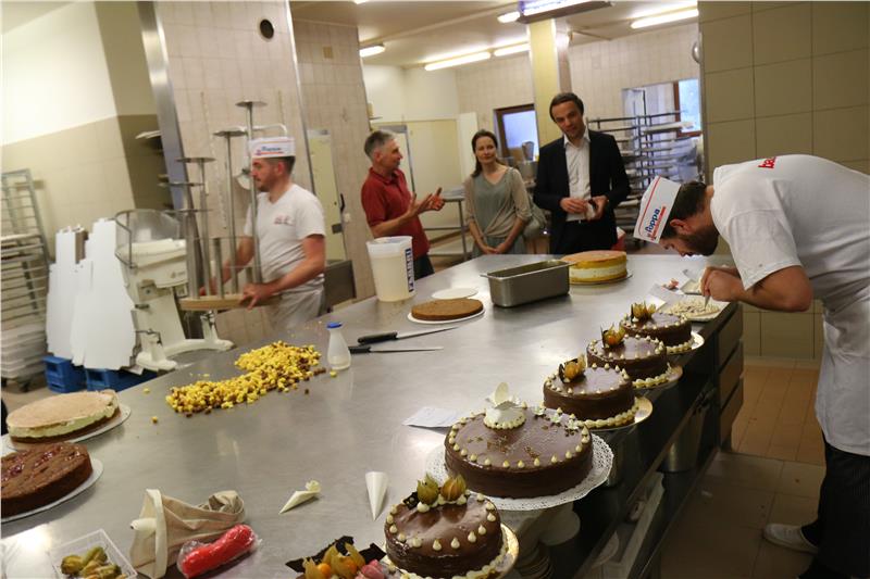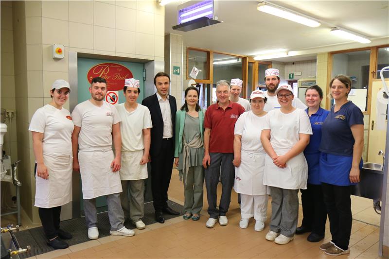 Die Konditorei Peter Paul bildet südtirolweit im Verhältnis zur Zahl der Mitarbeiter am meisten Lehrlinge aus – LR Achammer hat den Betrieb besichtigt.