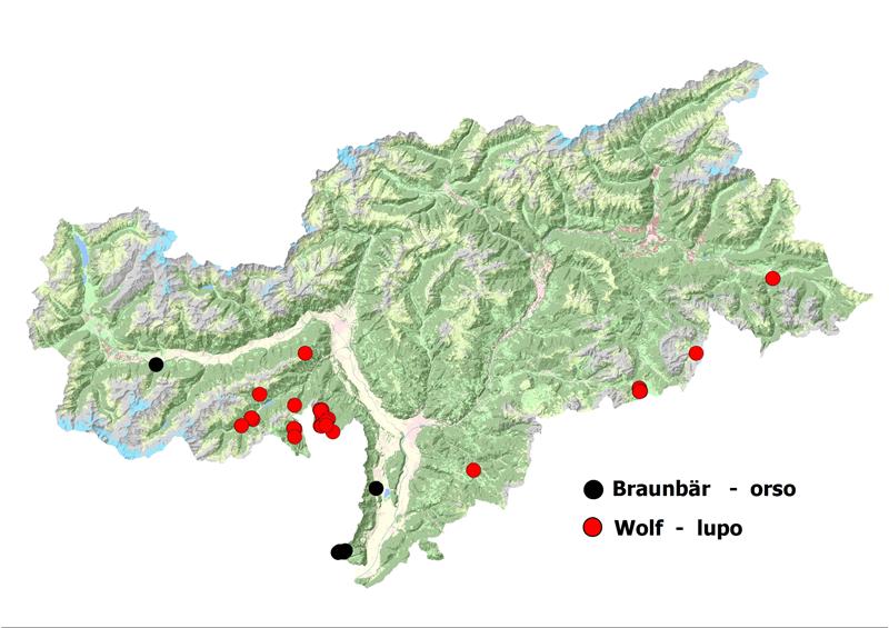 Großraubtiere in Südtirol: Aufenthaltsübersicht, Beratung, Beihilfen