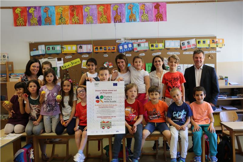 Gestern (25. Mai) hat sich Amtsdirektor Werth selber ein Bild von einer der Begleit-Aktionen, einem "Frutta Day", an einer ersten Klasse der Grundschule im Bozner Stadtteil Haslach verschafft. Während Ernährungstherapeutin Sandra Gasperotti mit den Lehrerinnen Marillen und Pfirsiche verteilt, erzählt eine Lehrerin: "In der Gruppe kosten alle Kinder alles gerne". Die Honigmelonen werden in mundgerechte Portionen zerkleinert, die Äpfel bei Bedarf aufgeschnitten. In den Wochen davor waren bereits Kirschen und Erdbeeren oder Karotten und Fenchel ausgeteilt worden.