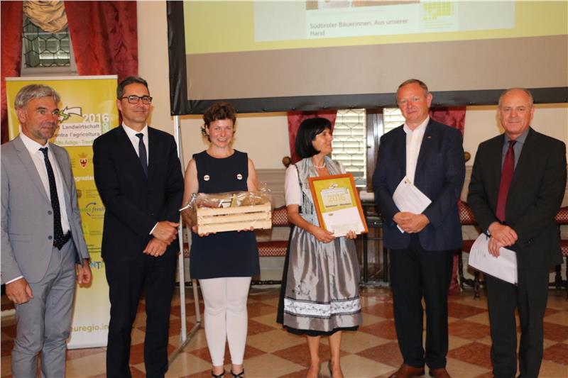 Der erste Preis in Südtirol wurde dem Projekt der Südtiroler Bäuerinnenorganisation zuerkannt: Die 65 Bäuerinnen unter der Marke "Südtiroler Bäuerinnen. Aus unserer Hand" geben Werte, Fähigkeiten, Traditionen und Wissen in den Bereichen Kulinarik, Handarbeit und Dekoration sowie Kultur und Natur weiter. Sie bieten etwa Kochkurse, Produktvorstellungen, Hofführungen und einen Buffetservice an und lassen so Touristen wie Einheimische an der bäuerlichen Welt teilhaben.
