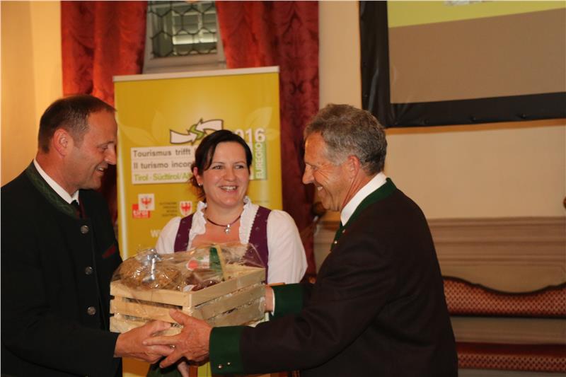 Bei der Prämierung Erfolgsprojekt "Tourismus trifft Landwirtschaft" heute (26. Mai) im Merkantilgebäude in Bozen wurde die gelebte Euregio spürbar.