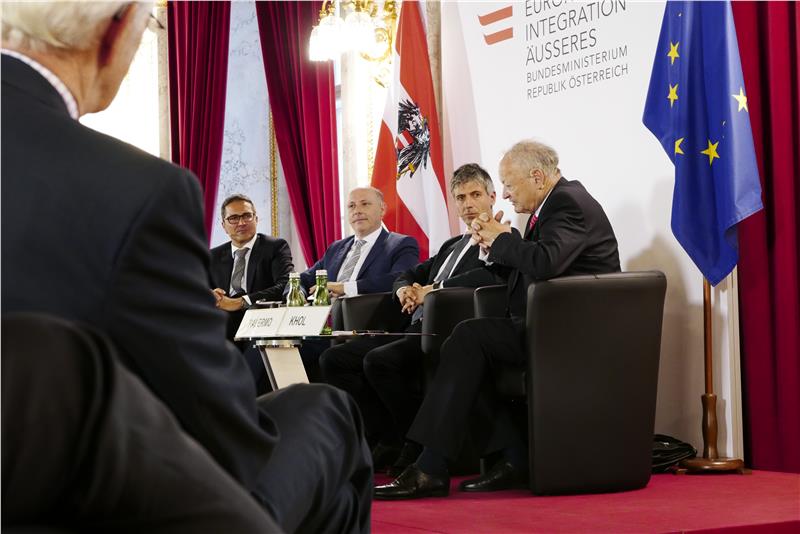 Am 19. Juni 1992, also vor genau 25 Jahren, haben Österreich und Italien vor der UNO erklärt, dass der Streit um Südtirol formell beigelegt ist. Diese Streitbeilegung stand im Mittelpunkt eines Strategiegespräches, zu dem Außenminister Sebastian Kurz heute (31. Mai) in das österreichische Bundesaußenministerium am Minoritenplatz nach Wien eingeladen. "Südtirol, die Autonomie, die Streitbeilegung können durchaus ein positives Beispiel für die Konfliktbeilegung in anderen Regionen sein", führte Außenminister Kurz ein.