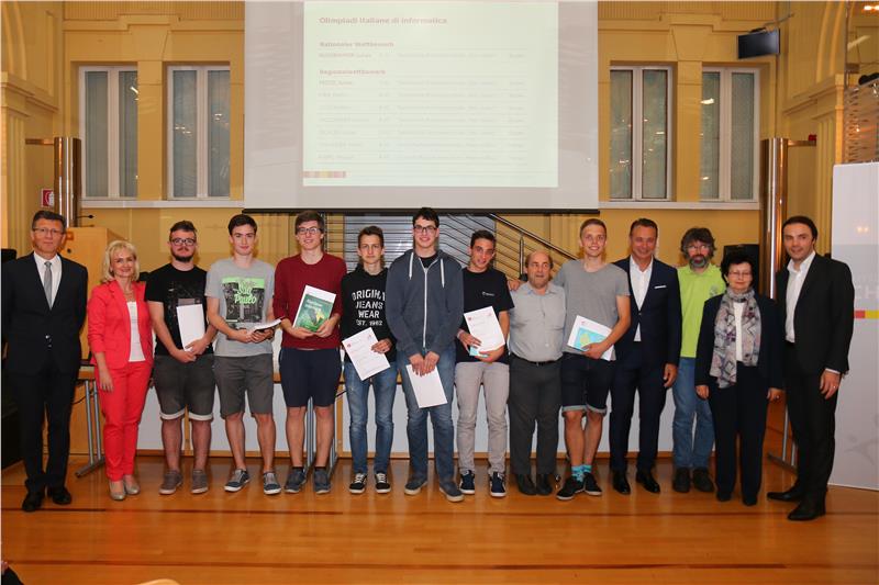 Die Schülerinnen und Schüler der deutschsprachigen Oberschulen, die an den Olympiaden in Mathematik-, Physik-, Informatik- und Chemie – also den sogenannten MINT-Fächern – in Südtirol und der Region sowie auf Staatsebene die besten Ergebnisse erzielt haben, wurden heute im Rahmen einer Feier geehrt. Bildungslandesrat Philipp Achammer und Schulamtsleiter Peter Höllrigl überreichten ihnen eine Urkunde und ein Buch als Geschenk.