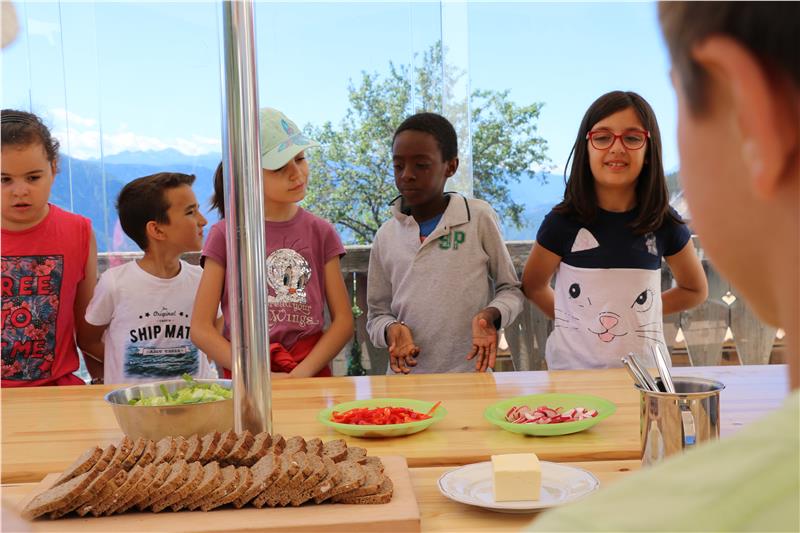 Wo Getreide wächst und wie es zu Mehl gemahlen wird, dass Gemüse kreativ angerichtet lecker mundet: Das haben 16 Schülerinnen und Schüler der Meraner Grundschule Galileo Galilei mit ihren zwei Lehrerinnen erlebt und genossen. Begeistert geführt von Fabian Plattner vom Haflingerhof in Jenesien waren sie der Herkunft von Obst und Gemüse auf der Spur und haben so Lebensmittel kennen- und wertschätzen gelernt.