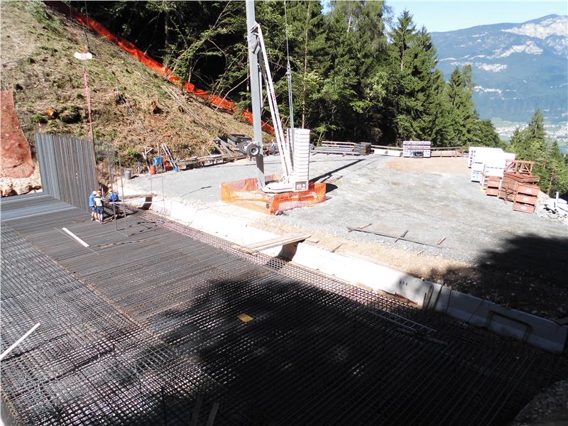 In der Nähe von Schloss Enn, 200 Meter oberhalb der Alten Fleimstalbahn, wird derzeit an einem Geschieberückhaltebecken mit einem Fassungsvermögen von 30.000 Kubikmetern Bachschutt gebaut. Vor dem eigentlichen Baubeginn musste ausgeholzt und eine Lastwagen-taugliche Baustellenzufahrt mit Baustellenplatz eingerichtet werden.