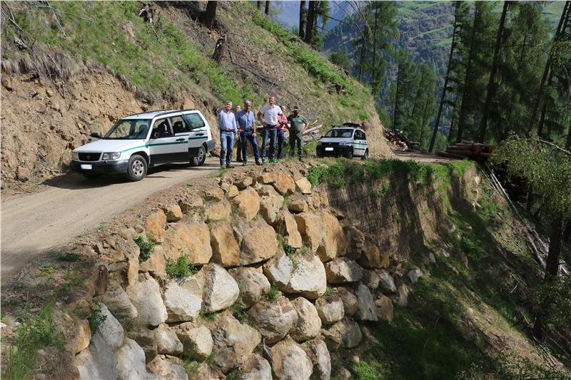 Landesrat Arnold Schuler hat nun den Fortgang des Baus des rund zweieinhalb Kilometer Erschließungsweges begutachtet, mit Ressortdirektor Klaus Unterweger, dem Direktor des Forstinspektorates Meran Peter Klotz und dem Leiter der Forststation Naturns Reinhold Kuppelwieser sowie dem Schnalser Bürgermeister Karl Josef Rainer. Landesrat Schuler zeigte sich bei der Wegbegehung beeindruckt von der großartigen Leistung der Forst und der Firma, die mit den Bauarbeiten beauftragt wurde, da das Gelände unwirtlich und äußerst steil ist. Mit dem Bau der Straße wurde 2011 begonnen; derzeit ist das 13. Baulos in der Umsetzungsphase. Der Alltag der Familie auf dem Saxalbhof ist derzeit erschwert, da sie vom öffentlichen Verkehrsnetz abgeschnitten sind. Die Straße wird bald wesentliche Erleichterung bringen.