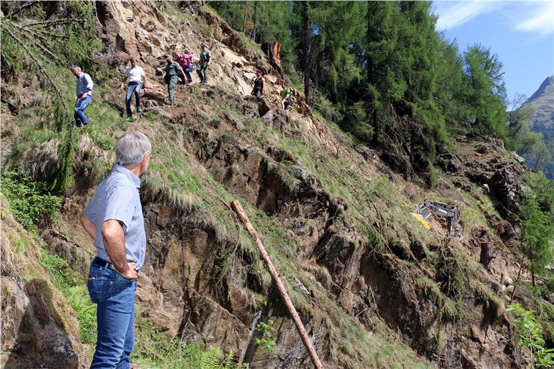 Der Saxalbhof in Karthaus im Schnalstal war bisher nur zu Fuß erreichbar; nun wird er mit einer Straße erschlossen. LR Schuler hat die Arbeiten begutachtet.