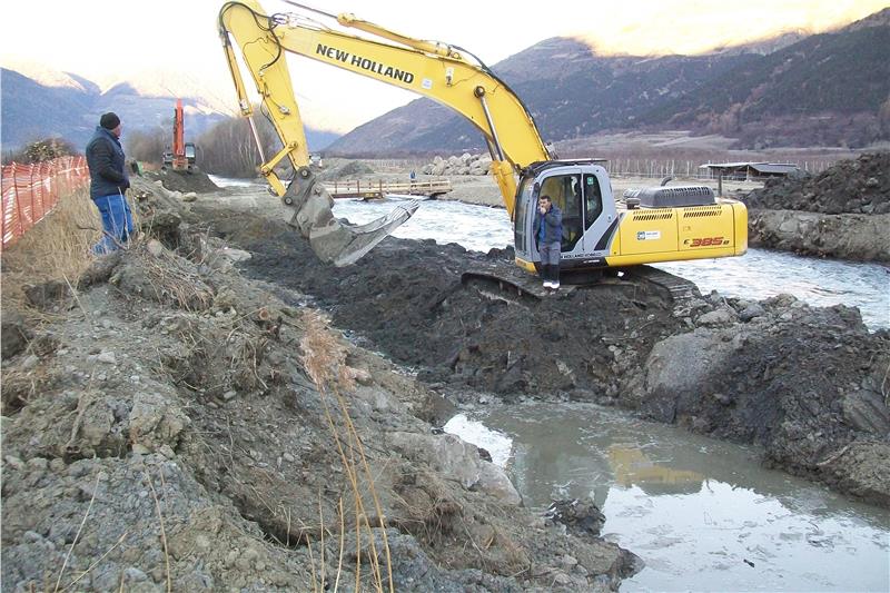 Für das erste Baulos zur Aufweitung der Etsch zwischen der Eyrser Au und der Ortschaft Laas gab es 2014 grünes Licht. Dabei wurden die Umwelt-Ausgleichszahlungen der Alperia Greenpower GmbH für die Finanzierung herangezogen. Das Landesamt für Wildbach- und Lawinenverbauung West begann 2015 mit der Umsetzung des Bauloses. "Im Herbst mussten wir die Arbeiten einstellen, weil wir am orografisch linken Uferdamm der Etsch auf Bauschutt gestoßen sind", berichtet Julius Staffler vom Amt für Wildbach- und Lawinenverbauung West der Landesagentur für Bevölkerungsschutz. Es handelte sich um eine alte, unkontrollierte Bauschuttdeponie, die zu Beginn der 1990er Jahre aufgelassen und mit Erdmaterial abgedeckt worden war.