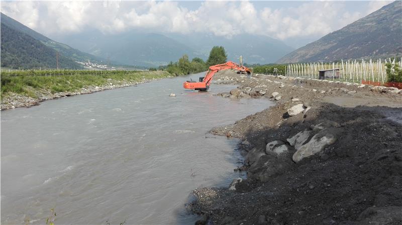 Um Laas vor Hochwasser zu schützen und die ökologische Gewässerqualität zu verbessern wird die Etsch bei Laas aufgeweitet. Ein Baulos ist nun abgeschlossen.