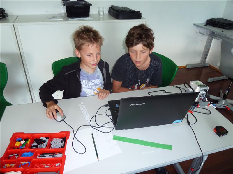 Dass Mathematik und Kunst mehr gemeinsam haben als vermutet, konnten die Schülerinnen und Schüler in einem weiteren Workshop entdecken: "Die Mathematik ist logisch, Kunst kann logisch sein oder kreativ. Wie machen beides. Wir haben alle Fantasie", bemerkte Melanie. Die Kinder bearbeiteten mathematische Fragestellungen, gestalteten mit Farben und Zahlen. Eine weitere Gruppe konnte einen Lego-Roboter selbst programmieren und dabei verschiedene Möglichkeiten austesten. Dafür braucht es Geduld, gaben die Schülerinnen und Schüler zu, der Zeitaufwand zahle sich aber auf jeden Fall aus. "Unsere Lego-Roboter können schon vieles, zum Beispiel einparken oder Legosteine einsammeln", freute sich Schülerin Marie.