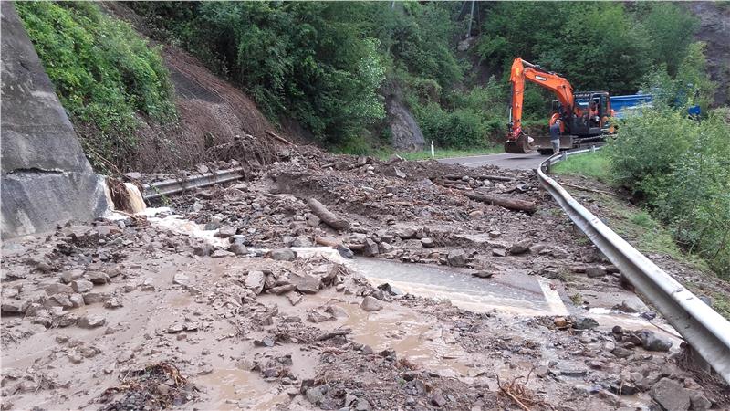 Bereits abgeschlossen sind die Räumungsarbeiten auf der Landesstraße bei St. Kathrein in Tiers (LS 65), die nach einer Hangrutschung und nach achtstündigen Räumungsarbeiten durch die Mannschaft des Straßendiensts Ties nun wieder zweispurig befahrbar ist.