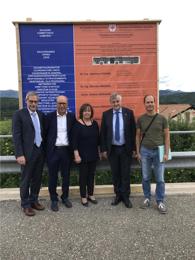 Das Mobilitätskonzept Metrobus Bozen-Überetsch stärkt den öffentlichen Personennahverkehr mit großen Bussen, Vorzugsspuren, intelligenten Ampeln und vor allem auch nutzerfreundlichen Haltebuchten. Dies unterstrich Mobilitätslandesrat Florian Mussner bei einem Treffen mit der Bürgermeisterin von Kaltern Gertrud Benin Bernard und ihrem Vize Werner Atz sowie Ressortchef Valentino Pagani und dem Techniker Stefano Maraner.