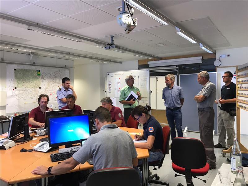 Bevölkerungsschutzlandesrat Schuler, Agenturdirektor Pollinger und Feuerwehrpräsident Gapp sind bereits vor Ort.