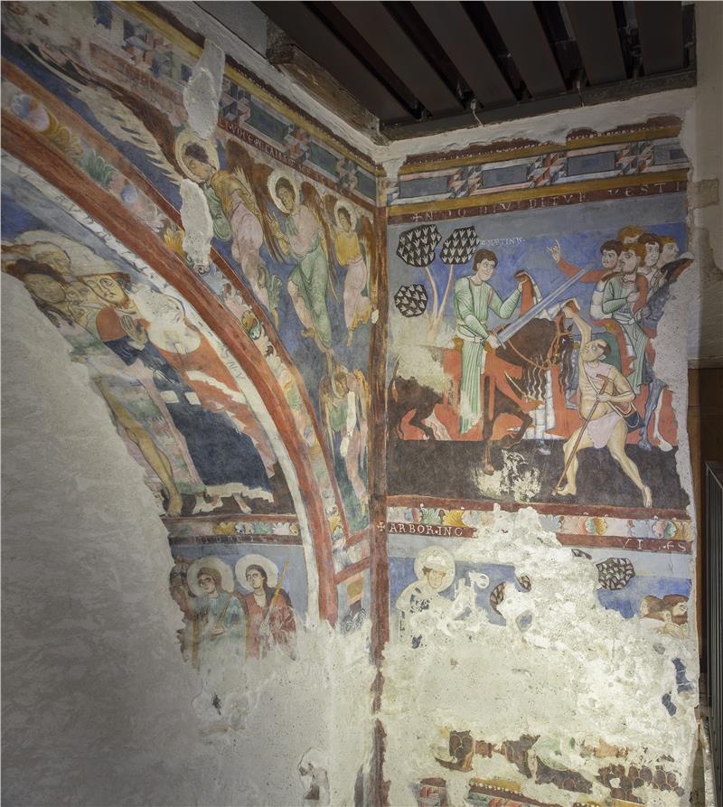 Die Burg Rodenegg beherbergt das europaweit älteste erhaltene Zeugnis ritterlich höfischer Wandmalerei im deutschsprachigen Raum – den Freskenzyklus zum Ywein-Roman des Hartmann von der Aue aus dem frühen 13. Jh. Mit der abgeschlossenen Restaurierung der bislang nicht bekannten romanischen Burgkapelle von Seiten des Amtes für Bau- und Kunstdenkmäler wird der Öffentlichkeit nun ein bedeutendes Zeugnis der romanischen Wandmalereiproduktion des ersten Viertels des 13. Jh. zugänglich, das Kunst- und Burgengeschichte schreibt und die Forschung um ein wichtiges Werk bereichert.