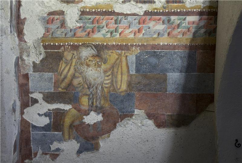 Die am besten erhaltenen Partien befinden sich im oberen Register der südlichen Langhauswand mit der Mantelspende des heiligen Martin aus einem ehemals größeren Martinszyklus. Von hoher Qualität und Ausdruckskraft ist die muskulöse männliche Figur mit gezopftem Barthaar in der Sockelzone, die in gebeugter Haltung nach dem Vorbild des mythologischen Riesen Atlas die Last des Himmelsgewölbes trägt.