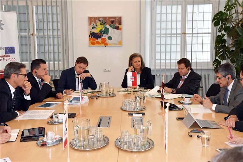 Die drei Euregio-Länder Tirol, Südtirol und Trentino, haben heute (25. September) gemeinsame Initiativen für den Wirtschaftsstandort der Euregio auf den Weg gebracht. In einem Treffen im Landhaus in Innsbruck konkretisierten Landesrätin Patrizia Zoller-Frischauf, Landeshauptmann Arno Kompatscher und der Generaldirektor des Trentino, Paolo Nicoletti, in Vertretung von Wirtschaftslandesrat Alessandro Olivi, einige Punkte des gemeinsamen Programms.