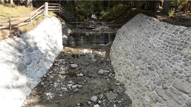 Im Unterlauf des Rudlgrabens, einem Zubringer des Pidigbaches in der Gemeinde Welsberg-Taisten, sind sowohl die Sperren als auch die Ufermauern aus Mauerwerk sanierungsbedürftig. "An zahlreichen Stellen haben sich Steine aus dem Verbund gelöst und bei vielen Sperren fehlt die Verfugung der Steine", erklärt Projektant und Bauleiter Thomas Gamper. Seit zwei Jahren wird der Rudlgraben einer umfangreichen Sanierung unterzogen.