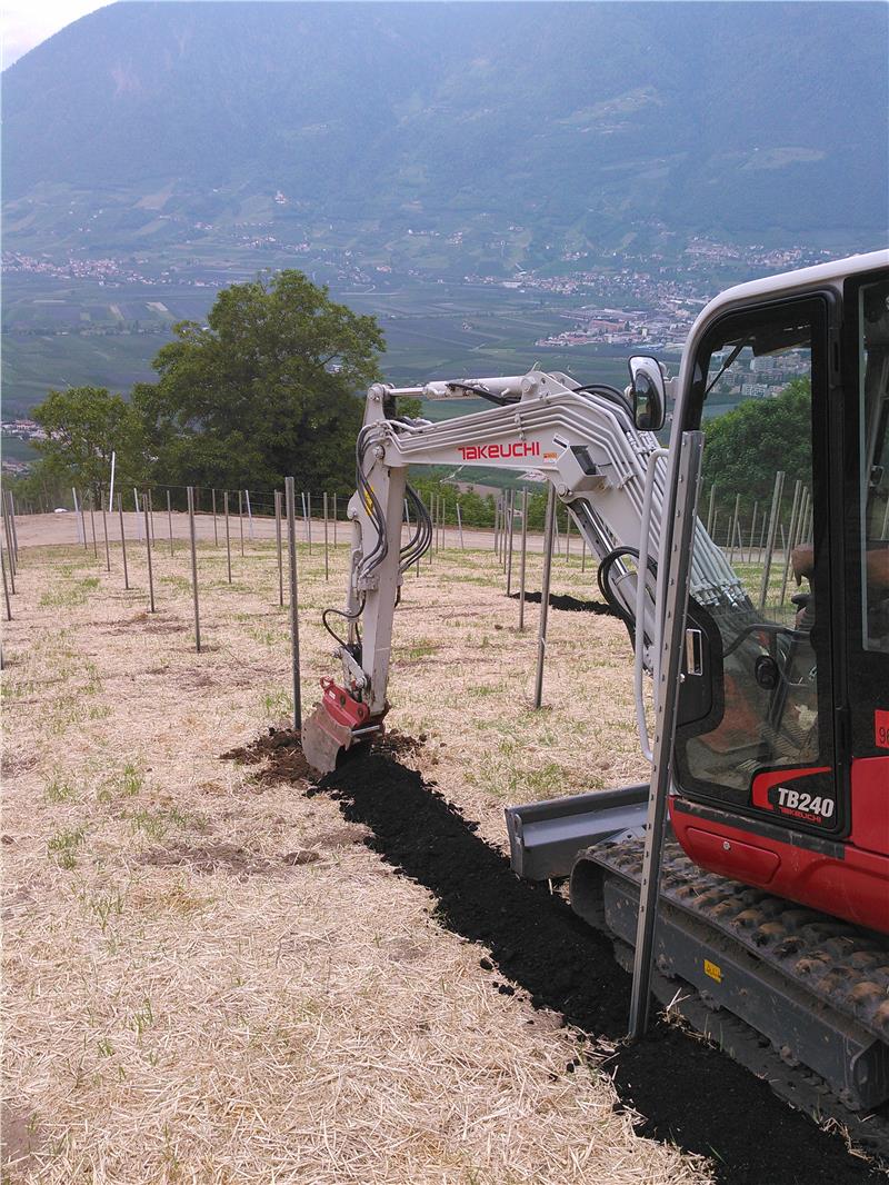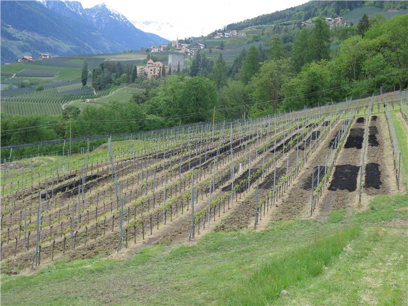 In verschiedenen Versuchskontexten konnte bereits nachgewiesen werden, dass sich Biokohle positiv auf die Bodenfruchtbarkeit auswirkt und den Gehalt an organischem Kohlenstoff stabil und dauerhaft steigern kann, erklärt Barbara Raifer, die am Versuchszentrum Laimburg den Fachbereich Weinbau leitet und am Projekt Wood up maßgeblich beteiligt ist. Auf gesamtstaatlicher Ebene ist die Nutzung von Biokohle als Bodenverbesserungsmittel seit 2015 erlaubt, sofern diese bestimmten physisch-chemischen Parametern entspricht. Im Projekt Wood up wollen die Forscher nun genauer untersuchen, ob Biokohle als Bodenverbesserungsmittel verwendet werden kann, um die Produktivität und Qualität der Apfel- und Weinanlagen zu verbessern und die Effizienz beschränkter Ressourcen (Wasser, Nährstoffe) sowie die Kohlenstoffbindung im Boden zu steigern. Auf diese Weise sollen die Auswirkungen des Klimawandels abgemildert werden. In den Versuchen wird Biokohle in verschiedenen Konzentrationen pur und in Mischung mit Kompost in die Versuchsflächen eingebracht und in den Boden eingearbeitet, erklärt Projektmitarbeiter Maximilian Lösch vom Versuchszentrum Laimburg. Dann wird das Wachstum der verschiedenen Varianten beobachtet, Trauben werden in kleinen Mengen zu Wein ausgebaut und bewertet.