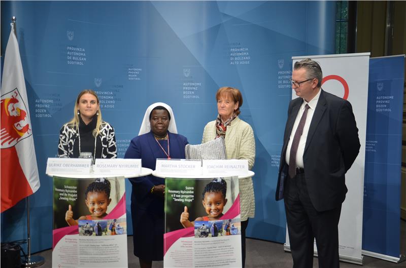 Heute (12. Oktober) stellte Schwester Rosemary Nyirumbe in Bozen ihr Projekt "Sewing Hope - Hoffnung nähen" vor. Seit 2001 konnte die Ordensfrau, die vom Time Magazine zu den 100 einflussreichsten Menschen der Welt gezählt wird, rund 2500 Mädchen und Frauen mit diesem Projekt Hoffnung machen. Und es funktioniert ganz einfach: Die jungen Frauen lernen, aus den Laschen von Getränkedosen Taschen zu nähen. "Diese Laschen sehen aus wie Müll, sie sind für uns Müll, wir werfen sie weg. Ähnlich fühlen sich auch die Frauen, denen wir in unseren Projekten helfen. Sie wurden weggeworfen, wie Dreck behandelt", sagte Nyirumbe. Unter ihrer Anleitung würden sie also nicht nur lernen, Taschen aus diesen Laschen zu nähen, sie lernten auch, ihre eigene Würde wieder herzustellen. Zehntausende Frauen und Mädchen in Uganda waren während des Bürgerkriegs von Rebellen entführt und als Kindersoldinnen und Sexsklavinnen missbraucht. Zurückgeblieben sind schwer traumatisierte Mädchen und Frauen, viele von ihnen haben Kinder aus einer Vergewaltigung und wurden von ihren Familien verstoßen.