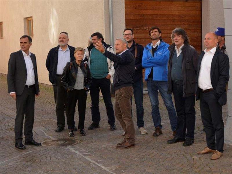 Mit Spitzenvertretern der Gewerkschaftsbünde, des Arbeitsförderungsinstituts und der Arche im KVW war Landesrat Richard Theiner Anfang der Woche beim Glurnser Bürgermeister Alois Frank zu Gast, um ein Best-Practice-Beispiel nachhaltiger Raumplanung und Wohnbaupolitik zu begutachten. "Hier in Glurns nimmt man einige der wichtigsten Zielsetzungen unseres Gesetzentwurfes Raum und Landschaft schon vorweg: die Nutzung bestehender Bausubstanz, das leistbare Wohnen und den umsichtigen Umgang mit Grund und Boden", unterstreicht der Landesrat.