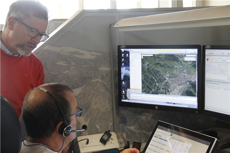 "Notruf – Emergenza": 15 neue Mitarbeiterinnen und Mitarbeiter nehmen als Call Taker (Telefonisten) den Notruf entgegen und sehen gleichzeitig dessen Herkunft auf einem ihrer Bildschirme. Ihre Schreibtische im Turm des Bevölkerungsschutzzentrums in der Drususallee 116 in Bozen sind rund um die Uhr besetzt. "Was ist passiert? Gibt es Verletzte?" Die Call Taker (Telefonisten) füllen ein Formular mit den Erstangaben aus und übermitteln es je nach Bedarf den Disponenten des Rettungsdienstes oder der Feuerwehrzentrale im Nebenraum. Diese fragen nach weiteren Details – "Sind die Verletzten ansprechbar?" - und schicken die Einsatzfahrzeuge auf den Weg.