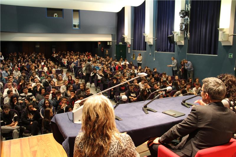 Die Schuldirektorin Cristina Crepaldi, eine Lehrperson und vier Schüler stellten dem Landeshauptmann mehrere Fragen in italienischer, deutscher und englischer Sprache zu verschiedenen Themen. Auf die Frage, welche Berufschancen die jungen Menschen hätten, wies Kompatscher auf die statistischen Daten zur Situation auf dem Arbeitsmarkt hin. "Wir sind sehr nahe an der Vollbeschäftigung", stellte der Landeshauptmann fest, "und die Daten weisen weiterhin einen Positivtrend auf. Was die Arbeitsmöglichkeiten in unserem Land anbelangt, können alle mit Zuversicht in die Zukunft blicken."