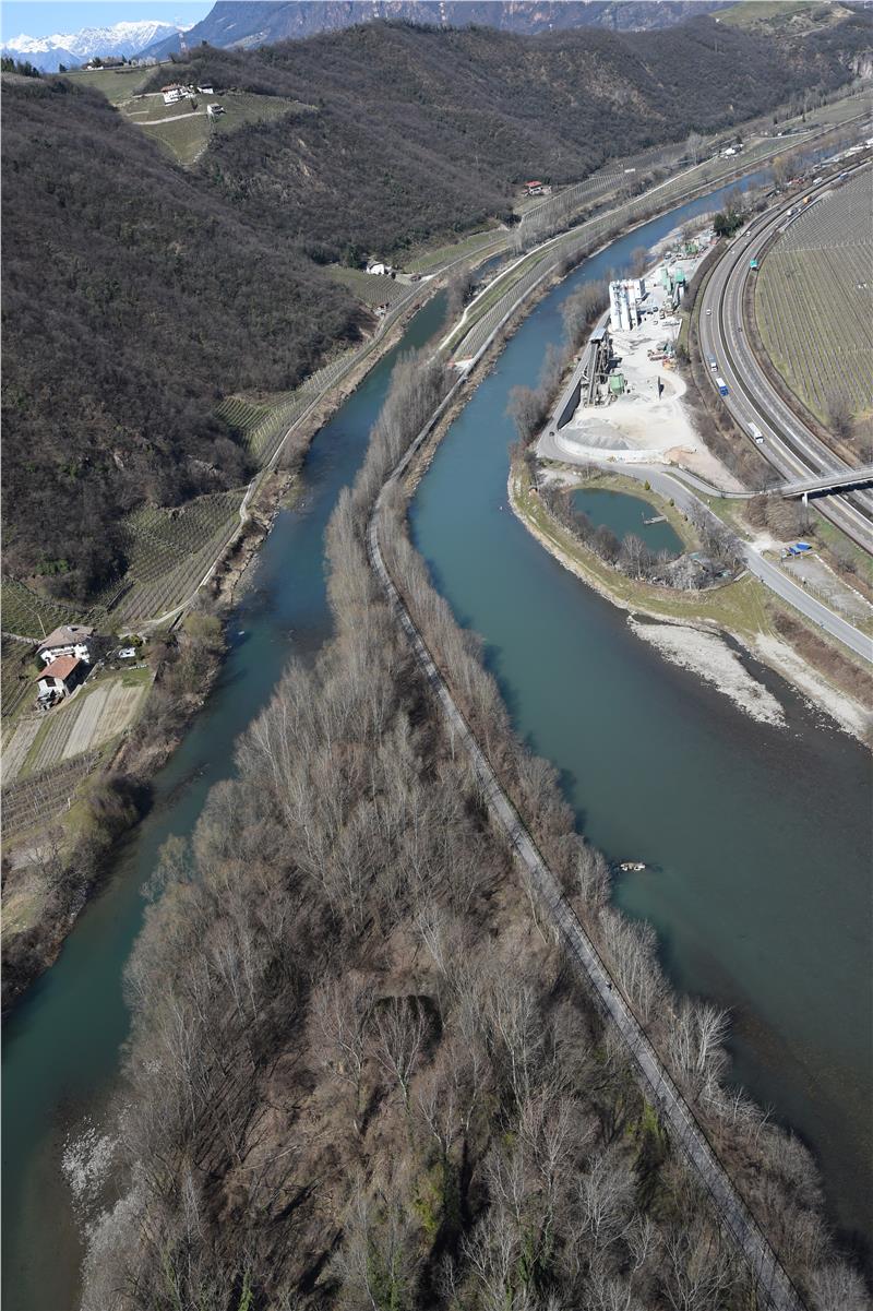 Das Biotop Fischerspitz südlich von Bozen ist eine langgezogene Landzunge am Zusammenfluss von Etsch und Eisack. Auf den Sand- und Schotterbänken haben sich Gehölze wie Silberweiden und Pappeln angesiedelt.