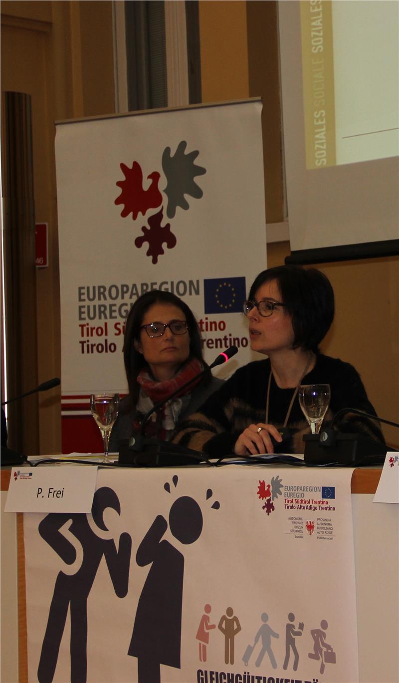 "Was die betroffenen Frauen betrifft, sind die Zahlen im Trentino denen in Südtirol sehr ähnlich", sagte Laura Castegnaro vom Amt für Innovation der Abteilung Soziales des Trentino. Das wesenltiche sei eine gute Netzwerkarbeit, betonte Castegnaro und bezog sich wie alle anderen auf das Übereinkommen des Europarats zur Verhütung und Bekämpfung von Gewalt gegen Frauen und häuslicher Gewalt (Konvention von Istanbul), die am 1. August 2014 in Kraft trat. Gemeinsam mit Loredana Lazzeri stellte sie das Netzwerk vor, das Frauen im Trentino vor Gewalt schützt. Lazzeri berichtete auch von der Initiative "cambia-menti", die die Täter - meist sind es Männer - erreichen soll.