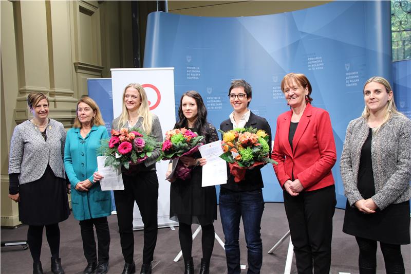 Sie haben sich alle drei mit dem Thema Gewalt auseinandergesetzt, wenn auch auf völlig unterschiedliche Weise. Heute (16. November) wurden die Arbeiten von Sandra Weger, Verena Cornella und Andrea Fleckinger prämiert. "Das Wesentliche dieses Preises ist, dass wir das öffentliche Interesse auf Themen lenken, die diese Sichtbarkeit brauchen", sagte Martha Stocker, Landesrätin für Chancengleichheit. Ulrike Oberhammer, Präsidentin des Landesbeirats für Chancengleichheit, unterstrich, wie vielfältig die Arbeiten waren, die eingereicht wurden.