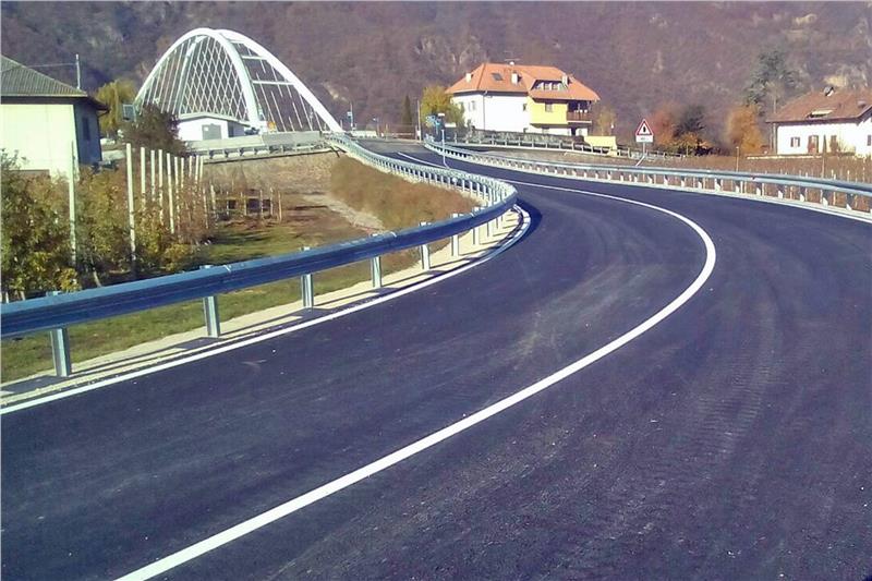 "Mit den Baueingriffen, Brücke, Unterführung und Verbindungsstrecke sowie dem dazugehörigen Kreisverkehr, von denen alle, außer die neue Verbindung, bereits in den vergangenen Jahren fertig gestellt wurden, haben wir auch die Verkehrssicherheit an den Kreuzungspunkten erhöht und einen Radweg angelegt, der den Uferabschnitt mit der Siedlung von Branzoll verbindet", erklärt Mussner. Der neue Straßenschnitt weist keine engen Kurven oder Steilstellen auf, weshalb der Verkehr flüssig verlaufen kann. Gebaut wurde der Verkehrsweg von einer Bietergemeinschaft bestehend aus Goller Bögl GmbH, Erdbau GmbH und Reggelbergbau GmbH. Investiert wurden rund 1,4 Millionen Euro.