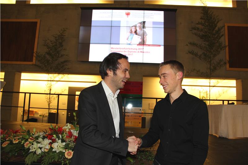 "Der Meisterbrief ist ein Gütesiegel für fachliche Qualifikation“, sagte Landesrat Philipp Achammer in seiner Festrede. Die hervorragend ausgebildeten Meister seien das Rückgrat der Klein- und Mittelbetriebe im Handwerk und Gastgewerbe in Südtirol. "Es braucht mehr denn je Vorbilder für die Berufsausbildung. Sie brauchen aber ebenso ein mehr an Anerkennung", betonte der Landesrat.