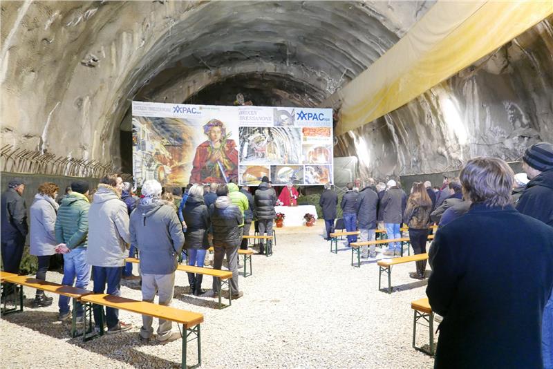 Anlass der Baustellenbesichtigung war der Gedenktag der Heiligen Barbara, Schutzpatronin der Bergleute, Mineure, Geologen, aber auch der Maurer und Architekten. Bei einer Andacht im Inneren des Tunnels erinnerte Dekan Albert Pixner an die Bedeutung der Heiligen Barbara und wünschte allen am Bau Beteiligten gutes Gelingen und eine unfallfreie Fertigstellung.