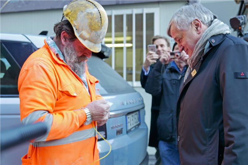 Die Bürgermeister Holzner und Mairhofer lobten, dass die Arbeiten termingerecht seien. Beide hoben die Wichtigkeit des Tunnels für die Mobilität im Ultental und am Deutschnonnsberg hervor und dankten dem Land für den Baueingriff.
