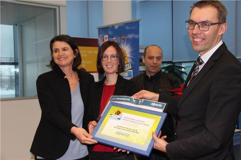 Heute wurde auch der "Energiepreis Südtirol" im Wert von 2.000 Euro für die beste Idee zum Thema Energieeffizienz bzw. erneuerbare Energien vergeben: Er ging an die Stadtwerke Brixen und die Sozialgenossenschaft Wia Nui für ihr Umweltbildungsprojekt "Alles Müll oder was?". Es soll Kindern und Jugendlichen den richtigen Umgang mit Abfall und Ideen zur Wiederverwertung vermitteln.