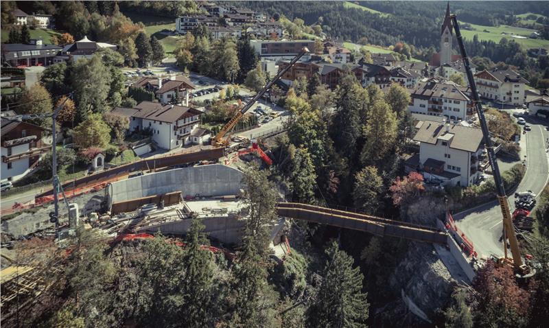 Insgesamt 443 Kalendertage haben die Bauarbeiten für die Errichtung der neuen Umfahrungsstraße des Ortskerns von St. Andrä in der Gemeinde Brixen gedauert. Mit dem Bau einer 38 Meter langen Brücke über den Trametschgraben Richtung St. Leonhard und Karnol konnte der Ortskern von St. Andrä vom Durchzugsverkehr entlastet werden. Die kurvenreiche Straße im Zentrum des Dorfes ist besonders für Busse und Sattelschlepper sehr beschwerlich zu befahren. "Mit der neuen Umfahrungsstraße lösen wir dieses Problem, denn sie bietet nicht nur mehr Sicherheit für alle Verkehrsteilnehmer, sondern ist auch ein wichtiger Schritt, um den Verkehr vom Ortskern zu verlagern", sagt Mobilitätslandesrat Florian Mussner. Der Landesrat eröffnete am heutigen 20. Dezember die neue Straße in Beisein von Ressortdirektor Valentino Pagani, Bürgermeister Peter Brunner und den zuständigen Technikern und Vertretern der beteiligten Unternehmen.
