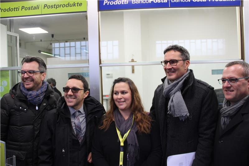 Feierstimmung herrschte heute (16. Jänner) Nachmittag in Steinmannwald: In Anwesenheit von Landeshauptmann Arno Kompatscher, Landesrat Christian Tommasini, der Bürgermeister und der Vize-Bürgermeister von Leifers, Christian Bianchi und Giovanni Seppi, eröffnete Postdirektor Luca Passero das Postamt in der Leiferer Fraktion wieder, das im Herbst 2015 geschlossen worden war. Die rund 2500 Einwohner von Steinmannwald können damit ab sofort drei Mal in der Woche, und zwar dienstags und donnerstags jeweils zwischen 8.20 und 13.40 Uhr sowie an Samstagen von 8.20 bis 12.45 Uhr den Schalterdienst der Post im eigenen Dorf in Anspruch nehmen.