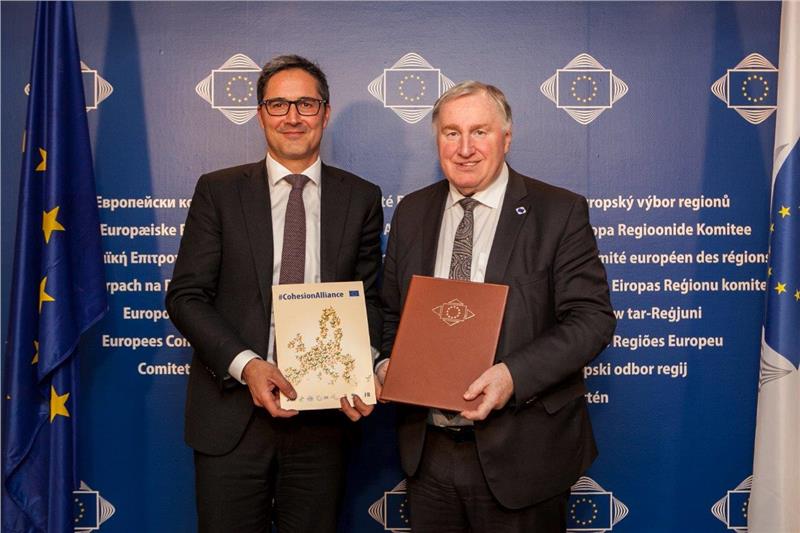 Im Anschluss an das Treffen mit Lambertz unterzeichnete Landeshauptmann Kompatscher das vom AdR ausgearbeitete Dokument für eine starke Kohäsionspolitik nach 2020 #CohesionAlliance. "Mit diesem Dokument fordert der AdR die Fortführung der Regionalpolitik nach 2020 für alle Regionen und die Beibehaltung des Budgets; zudem geht es um flexiblere staatliche Beihilferegeln, die Beibehaltung der grenzüberschreitenden und territorialen Zusammenarbeit und die Stärkung von Synergien. Von wesentlicher Bedeutung sind die Vereinfachung der Verfahren und die Entbürokratisierung, damit die Strukturfonds ihre Wirkung voll entfalten können", informiert Landeshauptmann Kompatscher.