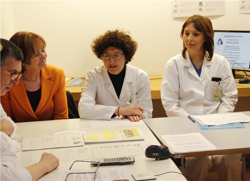 Die Zahl der Krebsneuerkrankungen nimmt weltweit zu, nach den Herz-Kreislauf-Erkrankungen sind sie die häufigste Todesursache. Im Hinblick auf den Weltkrebstag am 4. Februar besuchte Gesundheitslandesrätin Martha Stocker kürzlich den Tumorboard für Mammakarzinome im Krankenhaus Bozen, auch "breast unit" genannt, das die Onkologin Elisabetta Cretella leitet. Dieses Südtiroler Best-Practice-Modell ist Teil des Projekts der Zertifizierung der onkologischen Chirurgie im Sanitätsbetrieb, verantwortlich dafür sind Sanitätsdirektor Thomas Lanthaler und der Direktor der Abteilung Krankenhausbetreuung, Luca Armanaschi.
