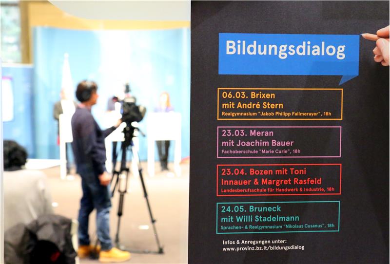 In der Folge werden der Arzt und Neurowissenschaftler Joachim Bauer (23. März, 18 Uhr, Meran, Fachoberschule für Tourismus und Biotechnologie "Marie Curie"), der ehemalige Skispringer Toni Innauer gemeinsam mit der Bildungswissenschaftlerin Margret Rasfeld (23. April, 18 Uhr, Bozen, Landesberufsschule für Handwerk und Industrie) und der Lernforscher Willi Stadelmann (24. Mai, 18 Uhr, Bruneck, Sprachen- und Realgymnasium "Nikolaus Cusanus") Gastreferenten des Bildungsdialogs sein.
