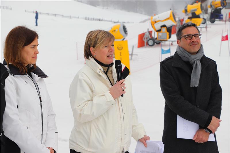 Die Doktorandin Martha Gärber ging in ihrer Ansprache bei der Pressekonferenz auf die Ergebnisse ihrer Forschungsarbeit über die 23 Dorflifte und 16 Kleinstskigebiete ein. Zwei Drittel befänden sich in strukturschwachen Gebieten, für die ein Dorflift von großer sozialer und wirtschaftlicher Bedeutung sei. "Dank der großen Zuversicht der Akteure vor Ort und der Landesförderung, die diese kleinen aber feinen Skigebiete zu 100 Prozent genutzt haben, konnten sie sich gut entwickeln und gute Saisonergebnisse erreichen", sagte Gärber.