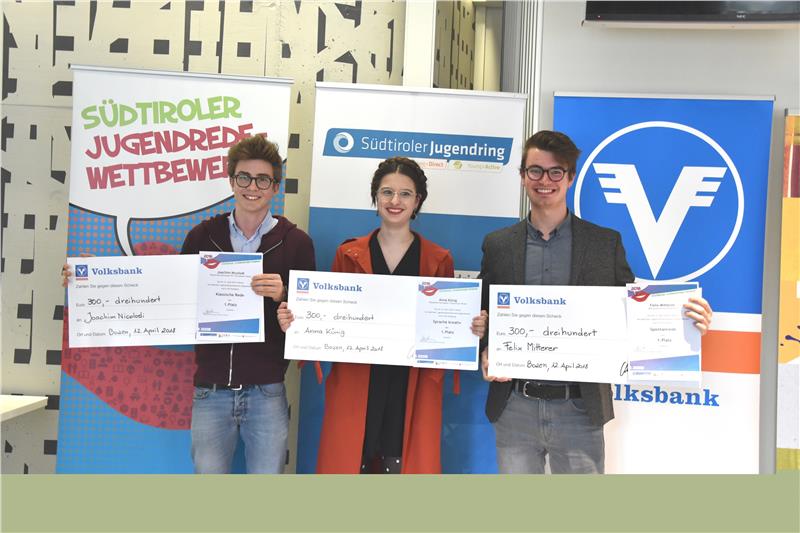 Bei der Spontanrede hingegen glänzte Felix Mitterer vom Oberschulzentrum Schlanders. Zweiter wurde Maximilian Winkler vom Realgymnasium und der Technologischen Fachoberschule Meran. Den dritten Platz sicherte sich der Universitätsstudent Matthias Ebner.