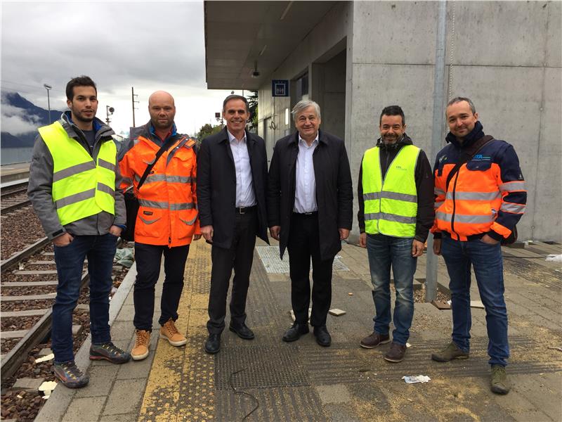Seit heute (14. April) morgen fährt die Vinschger Bahn wieder auf der gesamten Strecke. Der Teilabschnitt Meran-Töll war seit Jahresbeginn wegen Bauarbeiten an den Bahnhöfen Algund, Marling und im Marlinger Tunnel für den Bahnbetrieb gesperrt gewesen. Bei einem Lokalaugenschein am Marlinger Bahnhof haben sich gestern (13. April) die Landesräte Florian Mussner und Richard Theiner sowie Techniker der mit der Führung der Vinschger Bahn betrauten STA (Südtiroler Transportstrukturen AG) über den Stand der Dinge informiert.