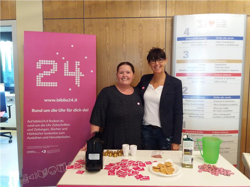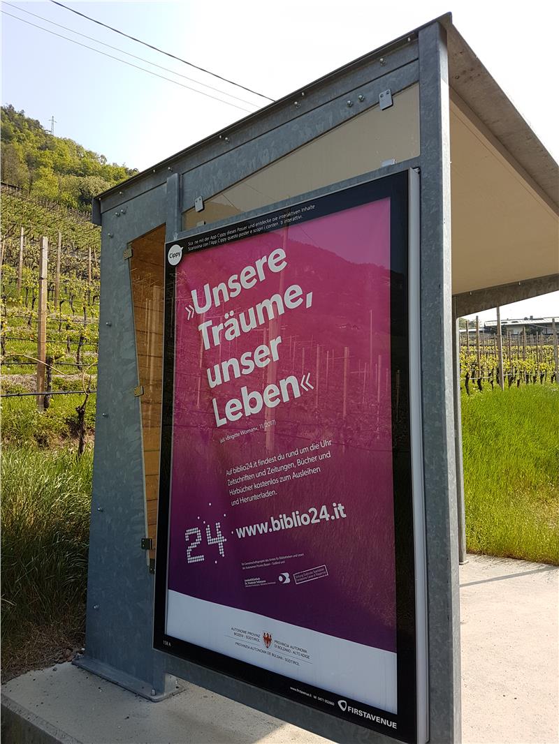 Um das Dienstleistungsangebot der Südtiroler Bibliotheken bekannter zu machen, läuft noch bis Ende dieser Woche eine Kampagne, bei der in Bars und Cafés in ganz Südtirol Zuckerbriefchen und Bierdeckel mit dem "Biblio24"-Logo verteilt werden. Auch über Radiospots und Plakat an den Bushaltestellen soll "Biblio24" beworben werden. Zudem werden an Ober- und Berufsschulen Buttons verteilt, um besonders Jugendliche auf das Angebot hinzuweisen. Betreut wird "Biblio24" vom Amt für Bibliotheken und Lesen der deutschen Kulturabteilung zusammen mit der Landesbibliothek "Teßmann", unterstützt von der Stiftung Südtiroler Sparkasse.