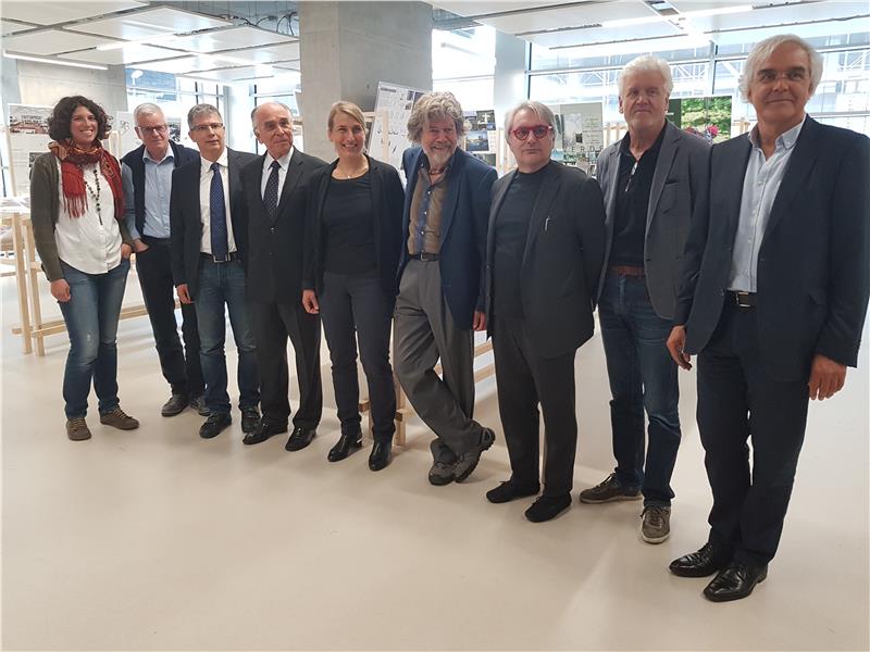 Gerade die Museen des bekannten Südtiroler Alpinisten Messner seien ein wichtigstes Aushängeschild für Südtirol und stünden für die Symbiose von Kultur, Innovation und Architektur, sagte Amtsdirektor Andrea Sega, der gemeinsam mit Wirtschaftsressortchef Ulrich Stofner, dem Alpinisten und Bauherren Reinhold Messner sowie dem Präsidenten des Organisationskomitees des Preises Bruno Gabbiani die Ausstellung eröffnet hat.