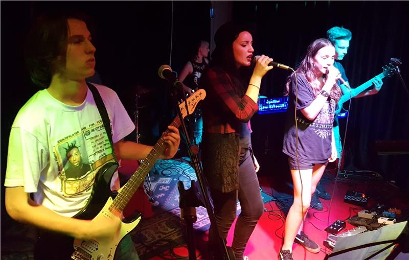 An Südtirols Musik- und Oberschulen mit Landesschwerpunkt Musik stehen nicht nur Volksmusik und Klassik auf dem Lehrplan. Der Instrumentalunterricht umfasst auch Musikrichtungen wie Pop, Rock, Jazz und viele mehr. Was die Schülerinnen und Schüler des Walther-von-der-Vogelweide-Gymnasiums und der Musikschule Überetsch dort in diesem Schuljahr alles gelernt haben, präsentierten sie Ende vergangener Woche bei einem Clubkonzert im Jugend- und Kulturtreff Bunker in Bozen/Haslach. Bei dieser Gelegenheit erfuhren die jungen Musikschülerinnen und -schüler, wie sich eine Band auf ihren Clubauftritt vorbereitet, welche Unterschiede es zu einem herkömmlichen Konzert gibt und warum dafür eine gute musikalische Vorbereitung allein nicht ausreicht.