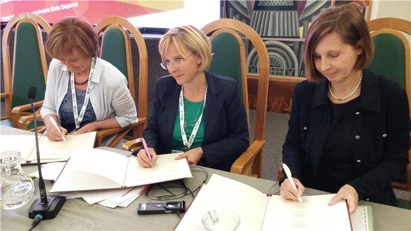 Landesrätin Martha Stocker sprach über Neuerungen im Hinblick auf die Frauenquote in Verwaltungsräten von öffentlichen Einrichtungen, über Erfahrungen im Bereich der Gendermedizin, über Solidarität und Widerstand gegen Gewalt an Frauen und über Beteiligung am politischen Leben. Ihre Trentiner Amtskollegin Sara Ferrari berichtete über die Erfahrungen der "Co-manager", über Vereinbarkeit und Aufteilung der Arbeit zwischen Frau und Mann im Haushalt, bei der Kindererziehung und der Pflege bedürftiger und kranker Familienmitglieder. Schwerpunkt der Ausführungen der Tiroler Landesrätin Gabriele Fischer waren Forschung und Ausbildung in der Gendermedizin.