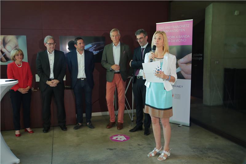Am Kalterer See fiel heute (19. Juni) der Startschuss für die Inbetriebnahme des Glasfasernetzes, über das Haushalte und Betriebe in Kaltern und Pfatten versorgt werden. Landeshauptmann Arno Kompatscher nutzte gemeinsam mit IT-Landesrätin Waltraud Deeg, Kalterns Vizebürgermeister Werner Atz und dem Vizebürgermeister von Pfatten, Elmar Oberhofer, die Gelegenheit, um sich von den Vorteilen einer ultraschnellen Internetverbindung zu überzeugen. "Schnelles Internet und WLAN sind heutzutage buchungsentscheidend", bestätigte Hotelierin Marion De Carli, deren Hotel als einer der 26 angeschlossenen Betriebe von der Realisierung des Projektes profitiert. Auch Gastgeber Michael Graf Goess Enzenberg vom Ansitz Manicor betonte, dass das aktuelle Arbeitspensum ohne digitale Anbindung kaum mehr möglich sei. Es sei ein wichtiger Weg in die Zukunft, für den es jedoch auch eine gewisse Eigeninitiative brauche, hob Goess Enzenberg hervor.