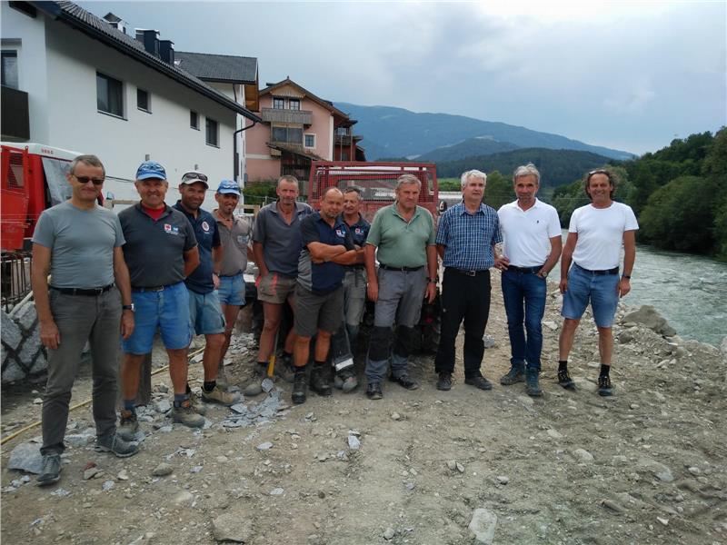 Bevölkerungsschutzlandesrat Arnold Schuler und der Direktor der Agentur für Bevölkerungsschutz Rudolf Pollinger haben zudem die Baustelle an der Rienz in St. Lorenzen besucht, wo an einem Hochwasserschutz gearbeitet, das Radwegenetz ausgebaut wird und gewässerökologische Maßnahmen umgesetzt werden. Der im Jahr 2016 genehmigte Gefahrenzonenplan der Gemeinde St. Lorenzen zeigt, dass die Rienz unter extremen Bedingungen Teile der Ortschaft St. Lorenzen überschwemmen könnte. Um diese Gefahr zu verringern, errichtet das Amt für Wildbach- und Lawinenverbauung Ost der Agentur für Bevölkerungsschutz 1,10 Meter hohe Hochwasserschutzmauern am Rienzdamm, unmittelbar unterhalb der Peintner Brücke. Mit dieser Maßnahme werden gleich drei Ziele erreicht: Die umliegenden Liegenschaften werden künftig vor Hochwasser und Überschwemmungen geschützt. Zudem wird der Grundstein zum Ausbau des linken Rienzdammes unterhalb der Peintner Brücke gelegt, auf dem ein neuer Abschnitt des überörtlichen Radweges in St. Lorenzen errichtet werden soll. Außerdem werden die Uferbereiche der Rienz in gewässerökologischer Hinsicht verbessert. Im Rahmen von zwei Baulosen wurden bereits 232 Meter Uferschutzmauer errichtet. Im Rahmen eines dritten Bauloses, an dem derzeit gearbeitet wird, ist der Bau einer circa 135 Meter langen Ufermauer aus Steinmörtelmauerwerk vorgesehen. Hierzu muss der bestehende, sanierungsbedürftige Uferschutz aus Zyklopensteinen erneuert werden. Im Einsatz sind Vorarbeiter Hubert Brugger und sein Bautrupp; die Kosten für das Projekt belaufen sich auf rund 215.000 Euro.